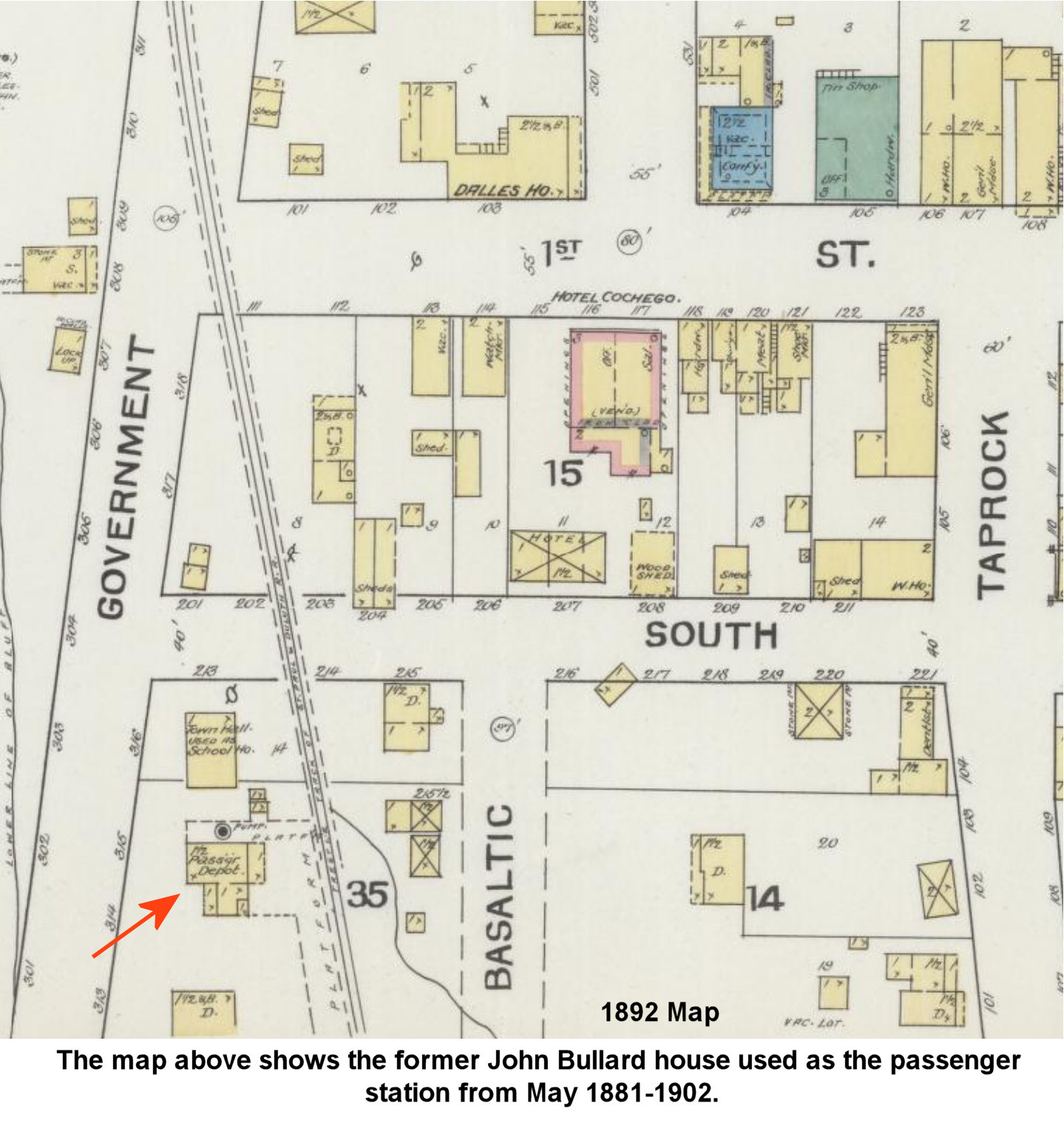 According to NP Valuation Reports from 1917, a new station was built here in 1891 and measured 24'x60'. | ||||||