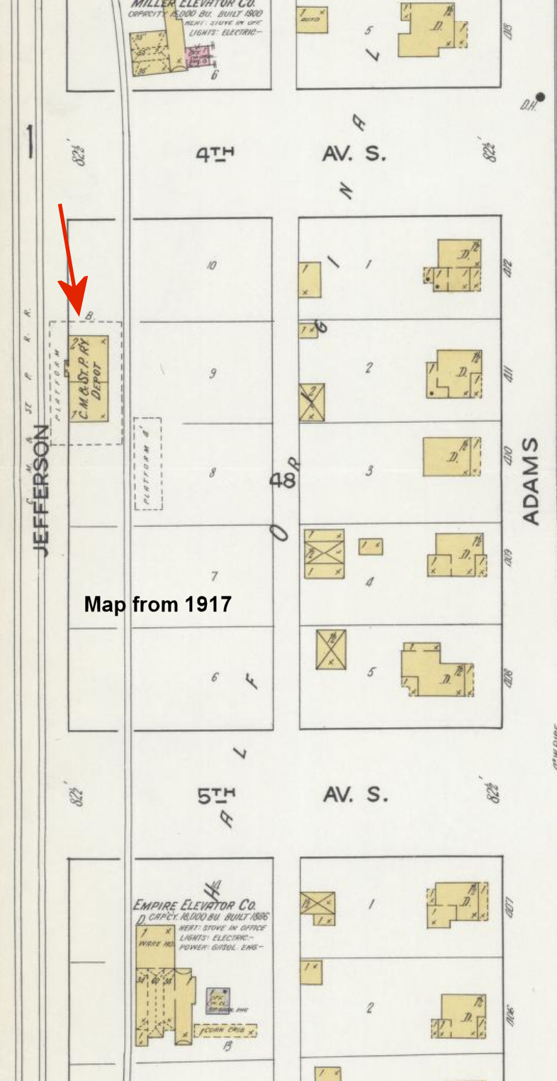 This earlier station was at the corner of 12th and Greeley Streets at GPS: 44.770871, -94.153763 (NE of where the current station is). | ||||||