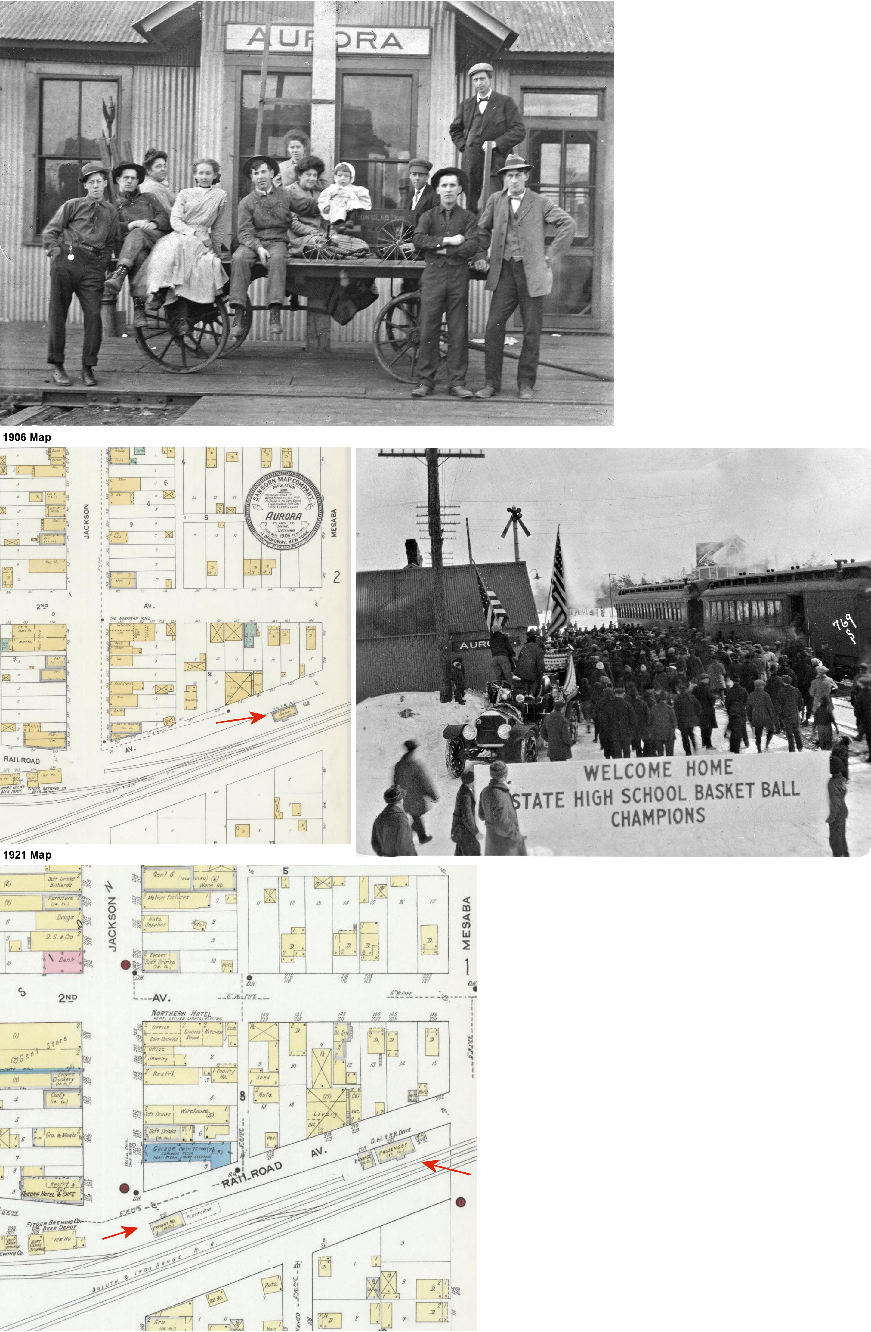 The Duluth & Northeastern RR also ran through this town (north/south, with the DM&N running east/west). That line was removed in 1926 and probably did not have a station. | ||||||