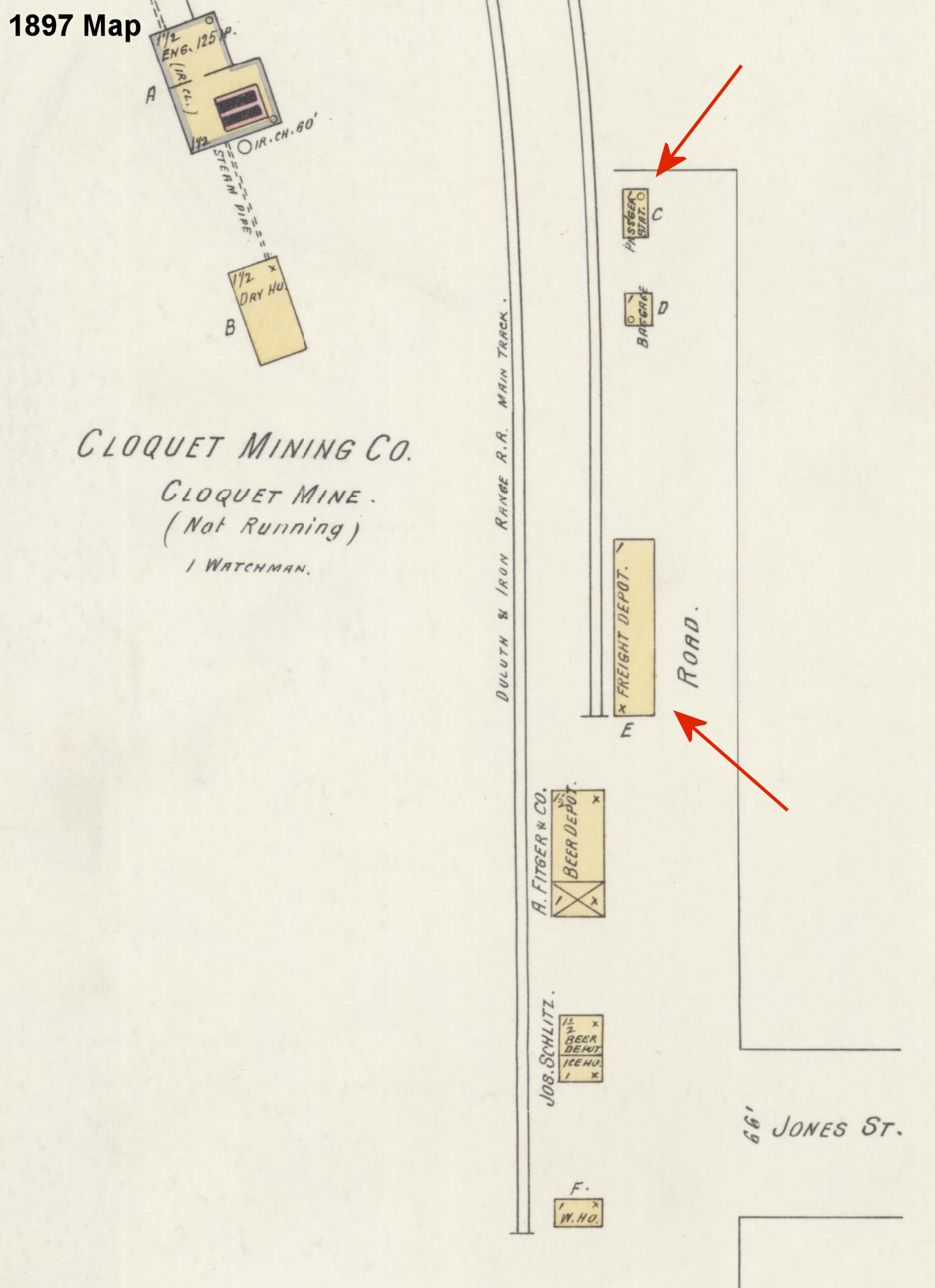 According to the D&IR shareholders meeting minutes from 1916, money was allocated for a new freight house here in the amount of $475. | ||||||