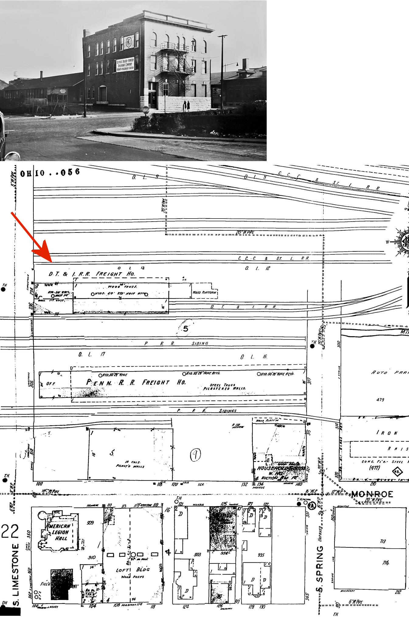 A new PCCC&St.L freight house was built around 1910 on the former site of the original CCC&I freight station. It was between South Limestone and Spring Streets at approximatley GPS: 39.920837,-83.808024. | ||||||