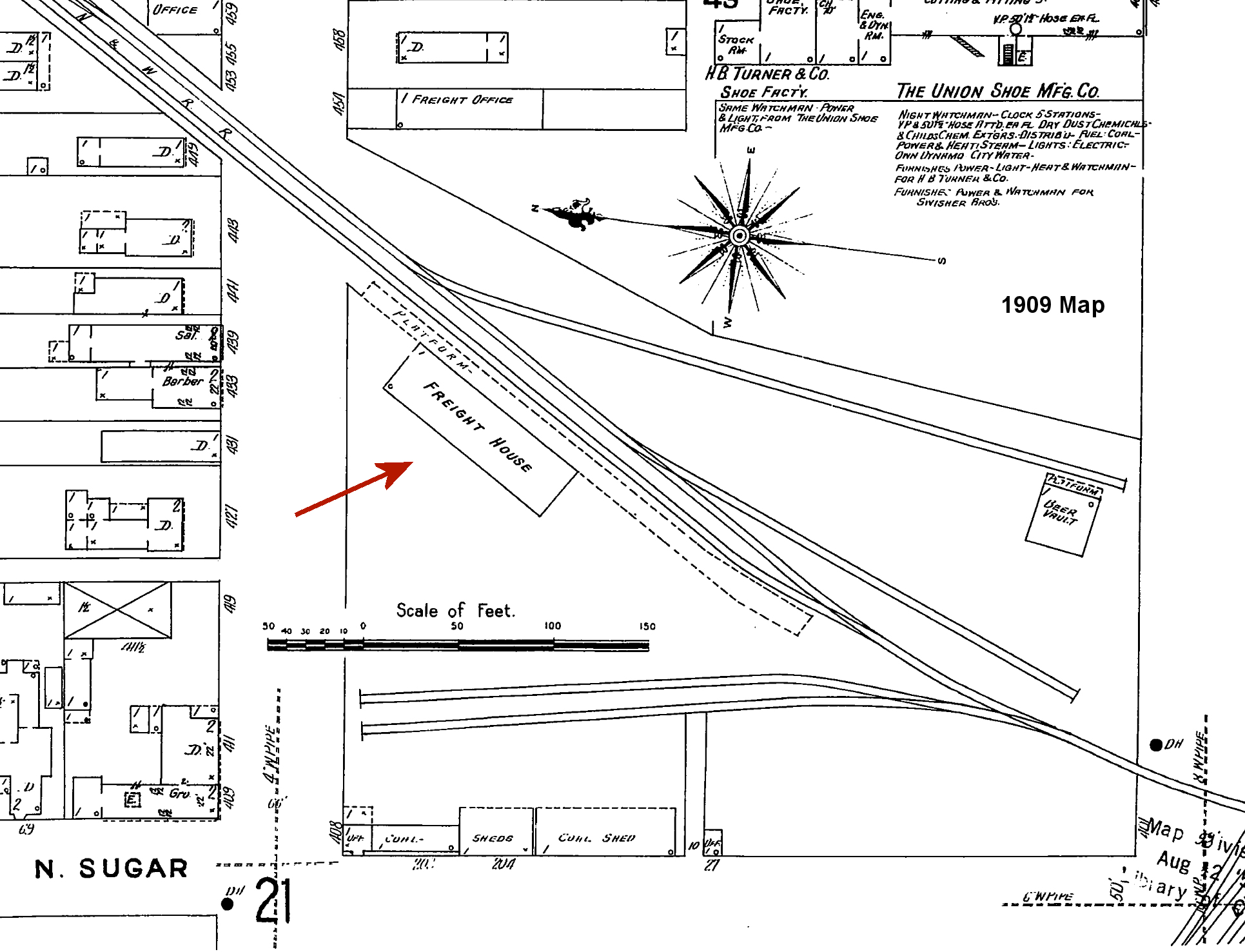 There was a freight station on Main Street to the east of the passenger station. | ||||||