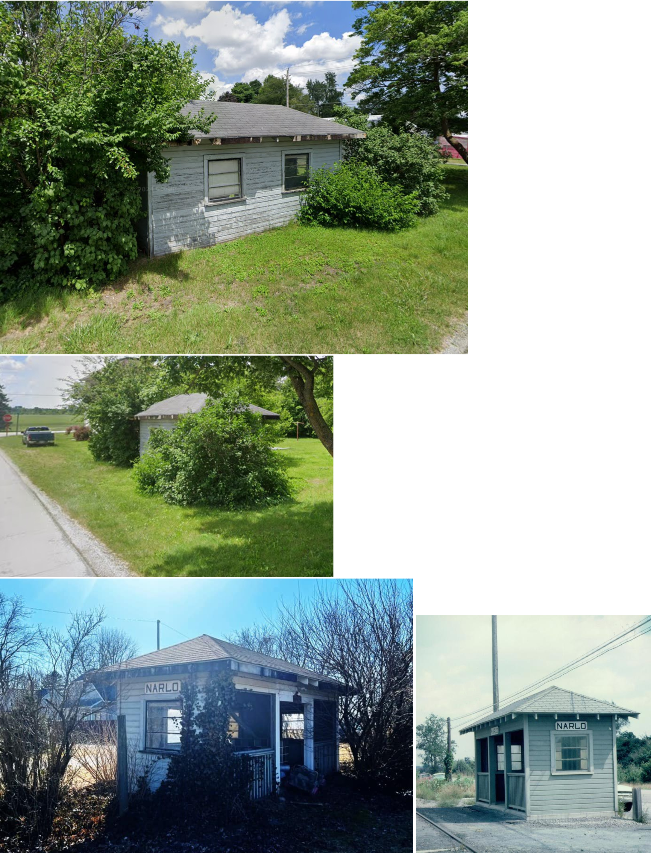 Stations... Amsden (LE&W) - The station was originally on the north side of Main Street (West County Road 28) on the SE side of the tracks (GPS: 41.216185,-83.326948). An interurban ran behind the depot. The depot was moved to the old interurban right-of-way. It is now on the south side of CR 28 at GPS: 41.215546,-83.327768. There are photos on the NKPTHS website of an old passenger coach as the depot at Amsden in 1925. It is not clear when, or if, that passenger car served as the station. Some photos list the passenger coach as the depot, whereas others label it an agent's residence (which seems more likely). Does anyone know for sure? Berwick (CCC&St.L) -