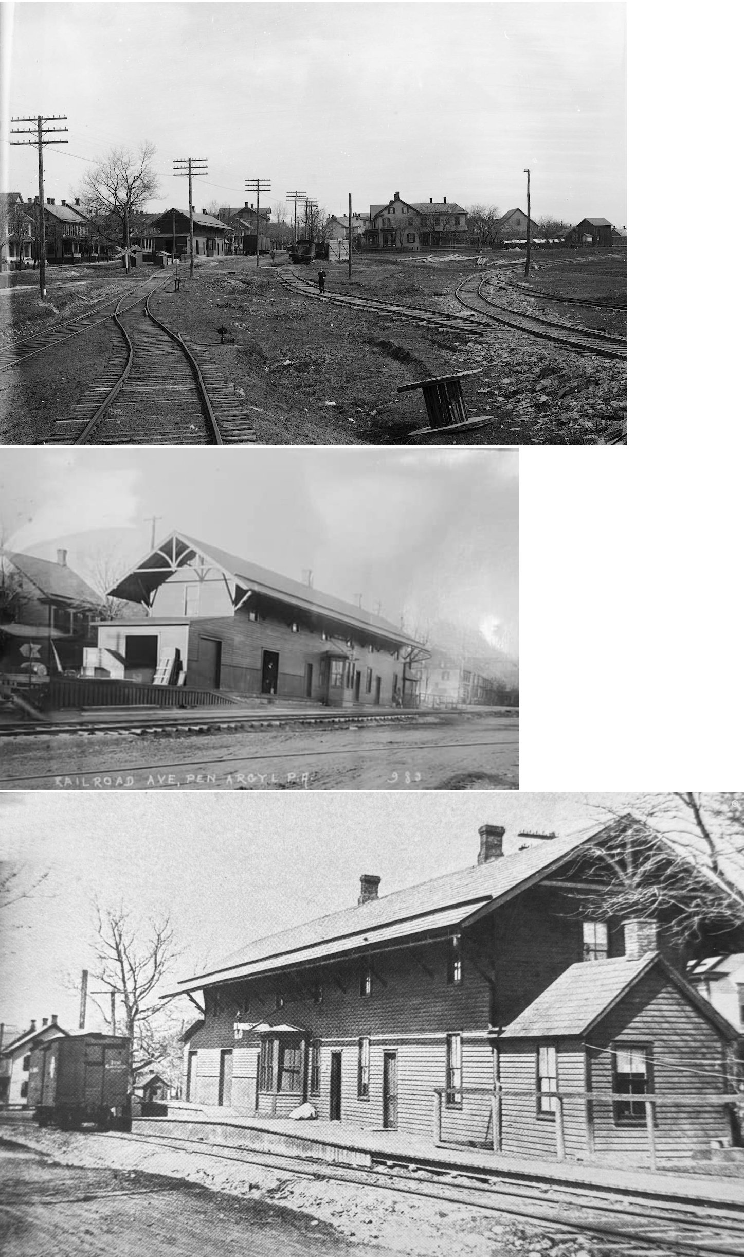 The original wood frame freight station was on the NE corner of West Pennsylvania Avenue and North Harding Avenue at GPS: 40.868544, -75.255740. | ||||||
